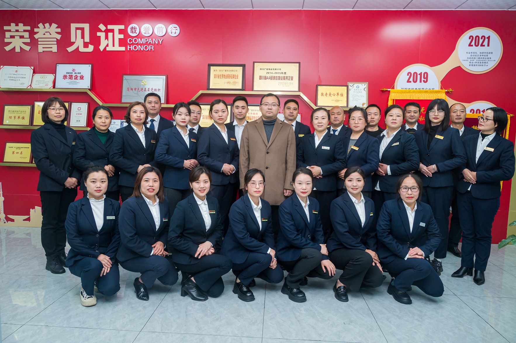 公司秉承“誠信、專業(yè)、溫馨、智慧”的企業(yè)理念,致力于為各類高端物業(yè)提供專業(yè)物業(yè)管理、顧問等服務(wù),以目標(biāo)管理和績效考核為導(dǎo)向的扁平化組織管理體系。2017年6月順利通過ISO9001:2015質(zhì)量管理體系認(rèn)證、ISO45001:2018職業(yè)健康安全體系認(rèn)證、ISO14001:2015環(huán)境管理體系認(rèn)證,確保管理和服務(wù)處于受控狀態(tài)。公司以建設(shè)學(xué)習(xí)型企業(yè)為目標(biāo),不斷汲取先進(jìn)的物管理念和技術(shù),強(qiáng)化各級(jí)各類培訓(xùn),目前公司管理層人員均經(jīng)過物業(yè)管理從業(yè)人員崗位培訓(xùn)。管理層員工均為大專以上學(xué)歷,總經(jīng)理有多年企業(yè)管理經(jīng)驗(yàn),副總經(jīng)理均有多年物業(yè)管理行業(yè)經(jīng)驗(yàn)和管理專長。 公司先后獲得“四川省優(yōu)秀物業(yè)服務(wù)品牌企業(yè)”、“四川省AA誠信管理服務(wù)企業(yè)”、 “企業(yè)信用AAA等級(jí)證書”、“五星能力物業(yè)服務(wù)認(rèn)證”、所服務(wù)的世外桃苑、園中苑榮獲“四川省優(yōu)秀品牌物業(yè)服務(wù)小區(qū)”、江東半島、華盛國際獲“成都市五星級(jí)住宅小區(qū)”、“成都市物業(yè)管理安全生產(chǎn)標(biāo)準(zhǔn)化達(dá)標(biāo)項(xiàng)目”、“簡陽市敬老愛心單位”、“簡陽市優(yōu)秀民營企業(yè)”、“先進(jìn)基層黨組織”、成都市蓉城先鋒.暖心物管“示范企業(yè)、示范項(xiàng)目”、職工書屋示范點(diǎn)等。